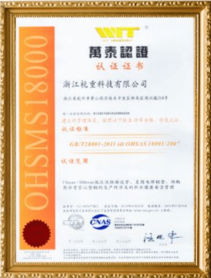 公司通過OHSAS18001職業(yè)健康安全管理體系認證